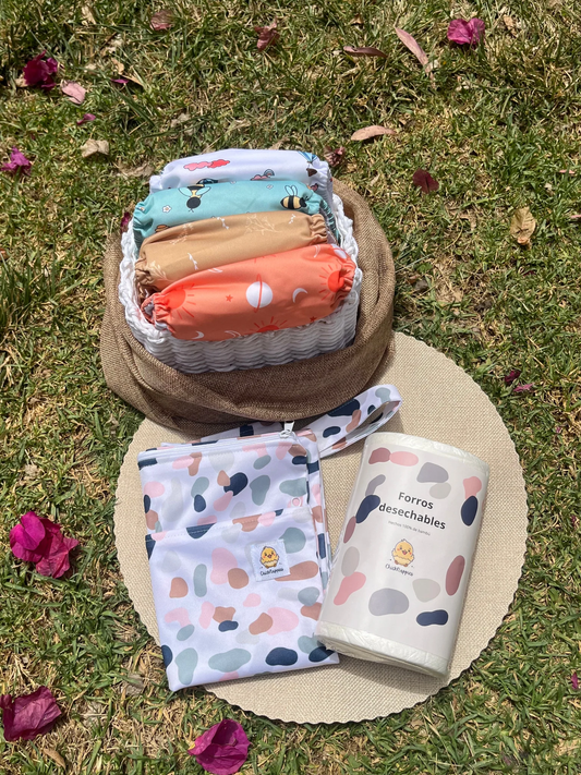 Todo lo necesario para iniciarte en los pañales de tela. Compra ahora packs de pañales reutilizables: un pequeño gesto, un gran cambio.